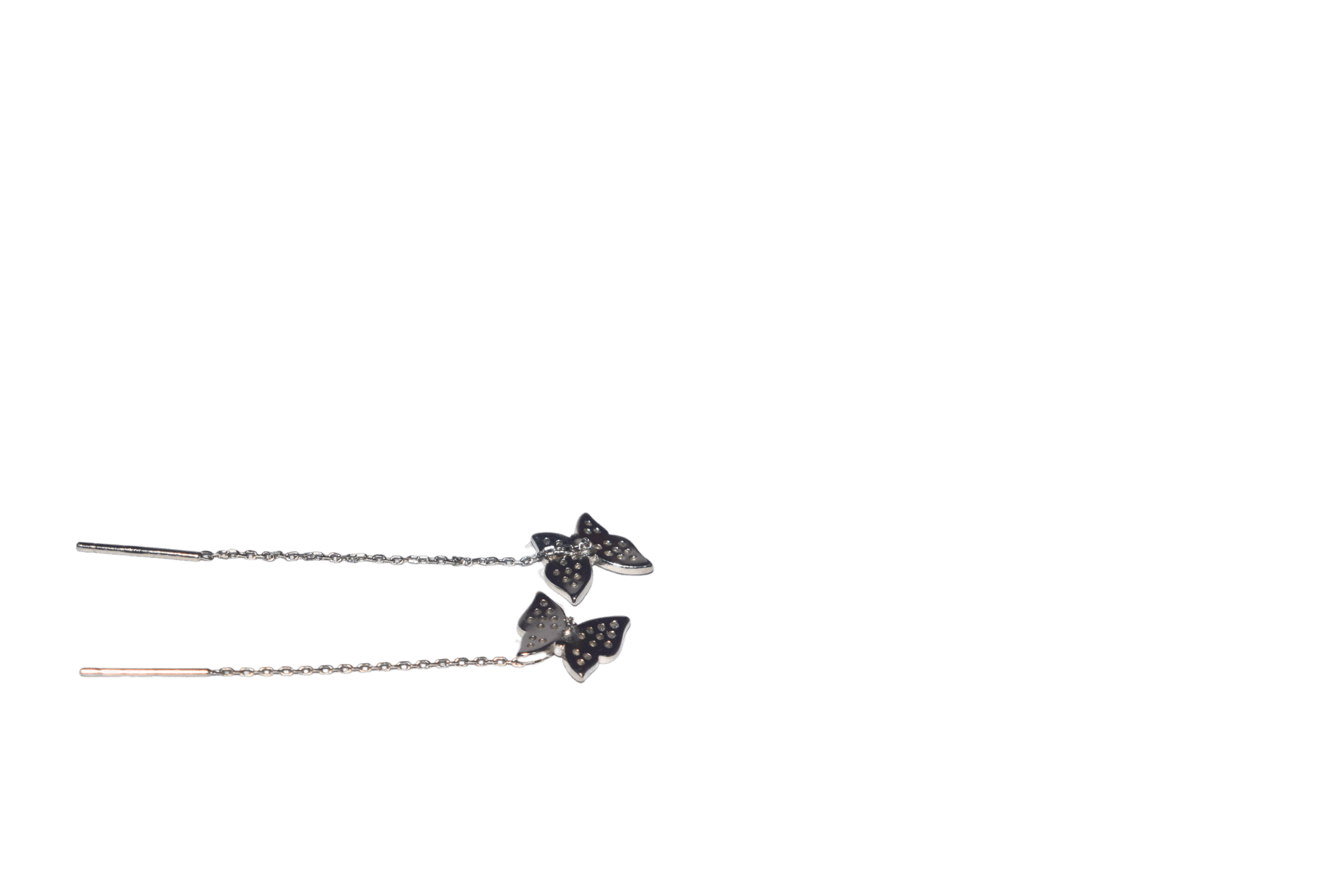Graceful and enchanting, the Butterfly Whisper Earrings are crafted in genuine 925 sterling silver and adorned with shimmering micro-pave stones that capture the delicate beauty of fluttering wings. Their lightweight threader design adds a modern touch while maintaining a timeless feminine charm, making them perfect for both everyday elegance and special evenings. Symbolizing freedom, transformation, and grace, these earrings are an exquisite addition to any jewelry collection.