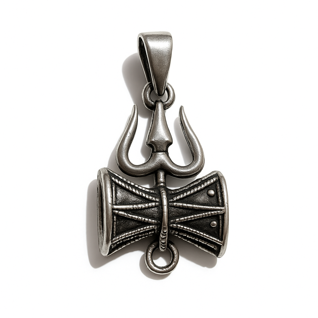Wear a timeless symbol of divine strength. Shiva’s Emblem is a meticulously crafted piece of 925 Sterling Silver, uniting the iconic Trishul (Trident) and the Damaru (Drum). The Trishul represents the three aspects of existence—creation, maintenance, and destruction—while the Damaru signifies the cosmic rhythm and the primordial sound ‘Om’.
