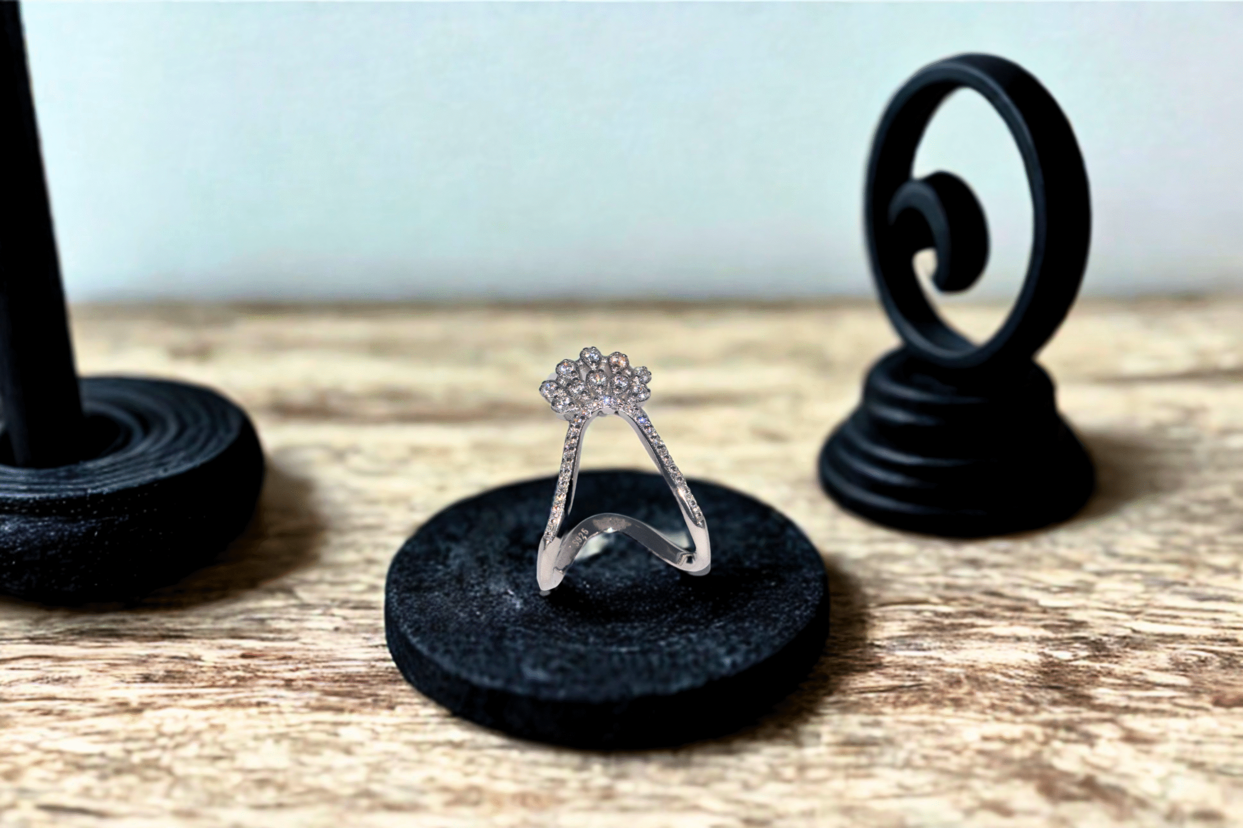 Let your style sing with elegance. The Silver Song Ring is crafted from premium 925 sterling silver, featuring a unique split shank design adorned with shimmering cubic zirconia stones. Its floral-inspired centerpiece sparkles from every angle, making it the perfect statement ring for women who love timeless beauty with a modern twist. Lightweight, hypoallergenic, and tarnish-resistant, this silver ring is ideal for daily wear, special occasions, or as a thoughtful gift for someone special.\