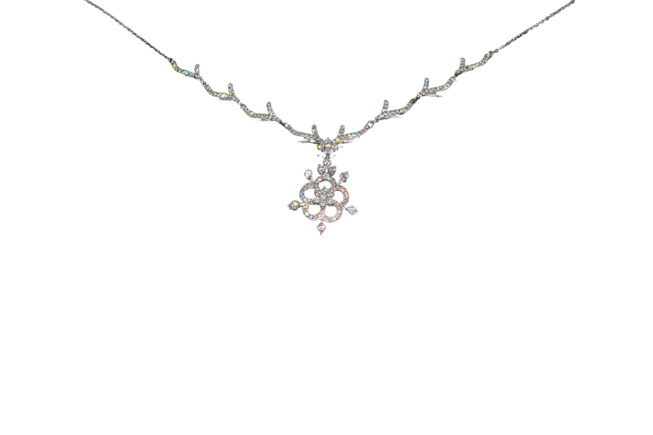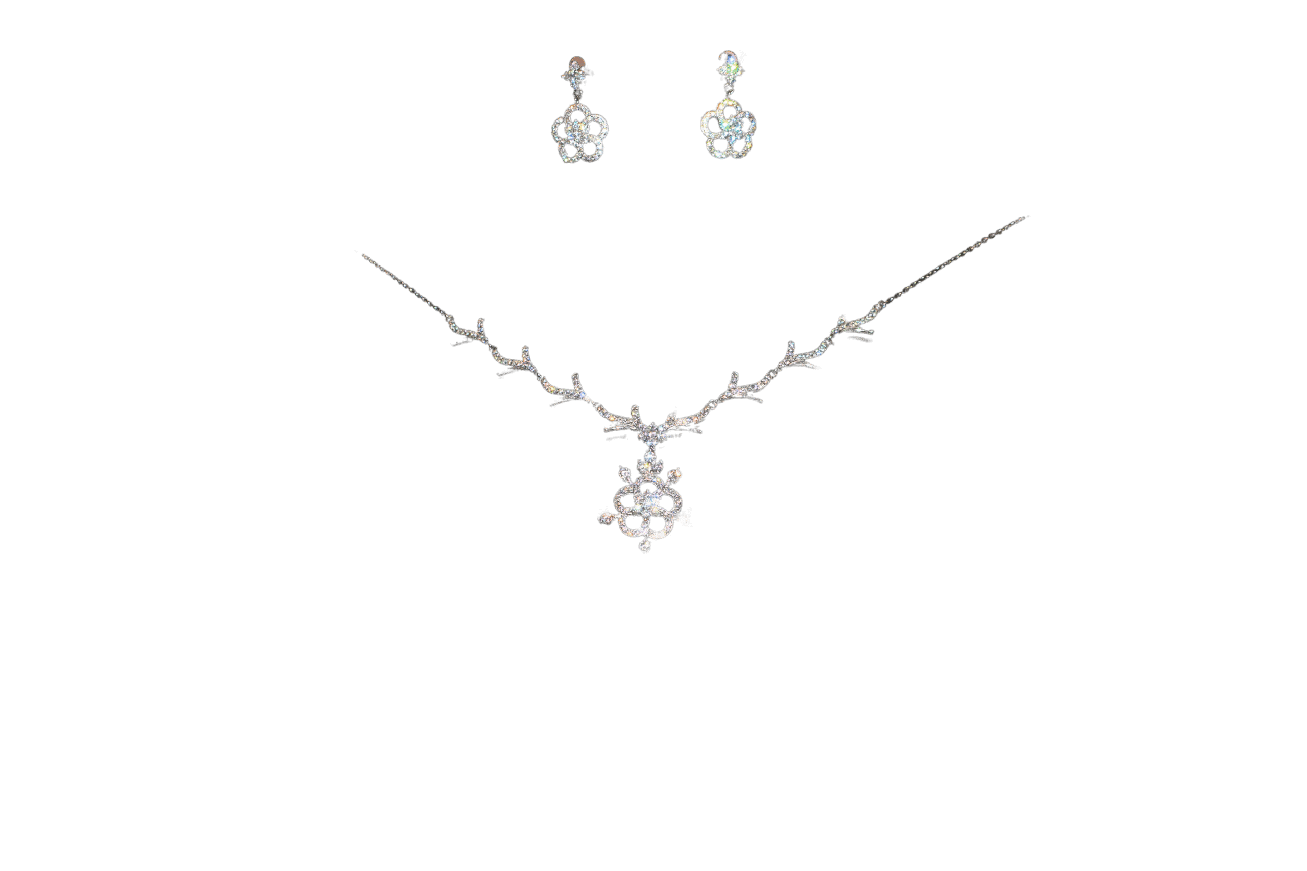 Elevate your elegance with this sterling silver women’s necklace set, featuring a beautifully crafted floral design encrusted with shimmering cubic zirconia stones. The delicate necklace showcases intricate vine-inspired detailing, complemented by a matching pair of floral earrings. Perfect for weddings, parties, and festive occasions, this timeless jewelry set adds sophistication and sparkle to any outfit.