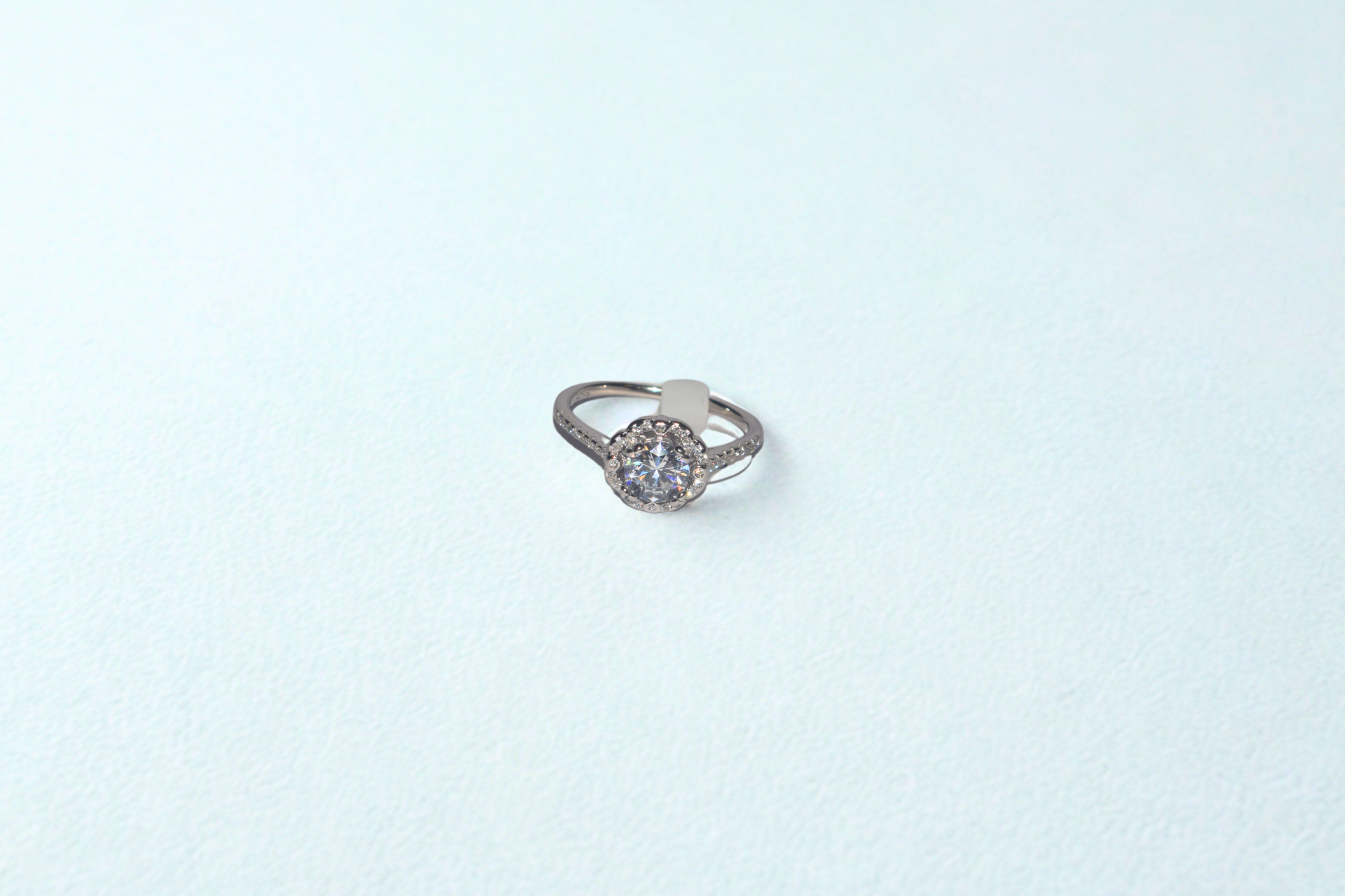 Brilliant round-cut solitaire with halo setting